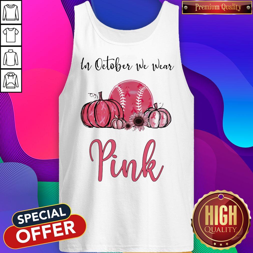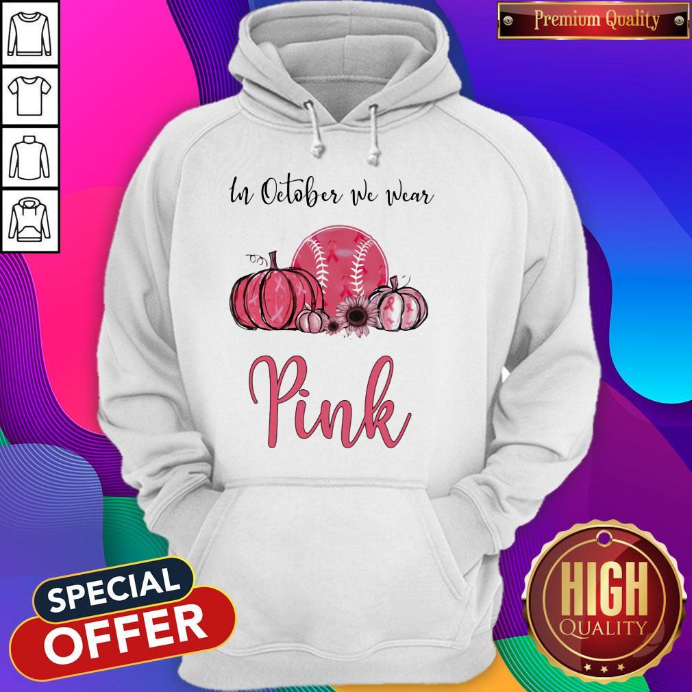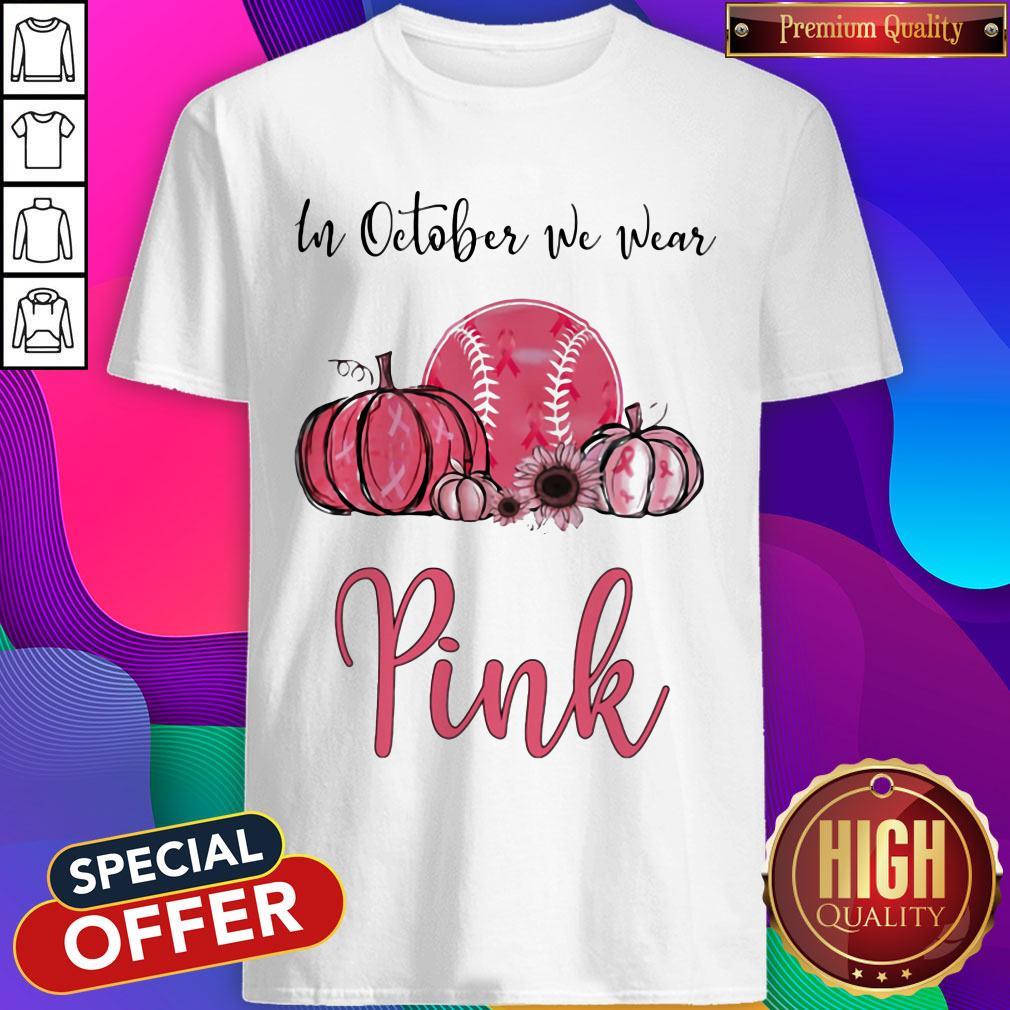 Official In October We Wear Pink Breast Cancer Awareness Pumpkin Baseball Shirt