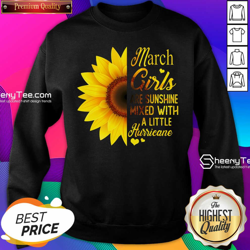 Official March Girls Are Sunshine Mixed With A Little Hurricane Sunflower Shirt