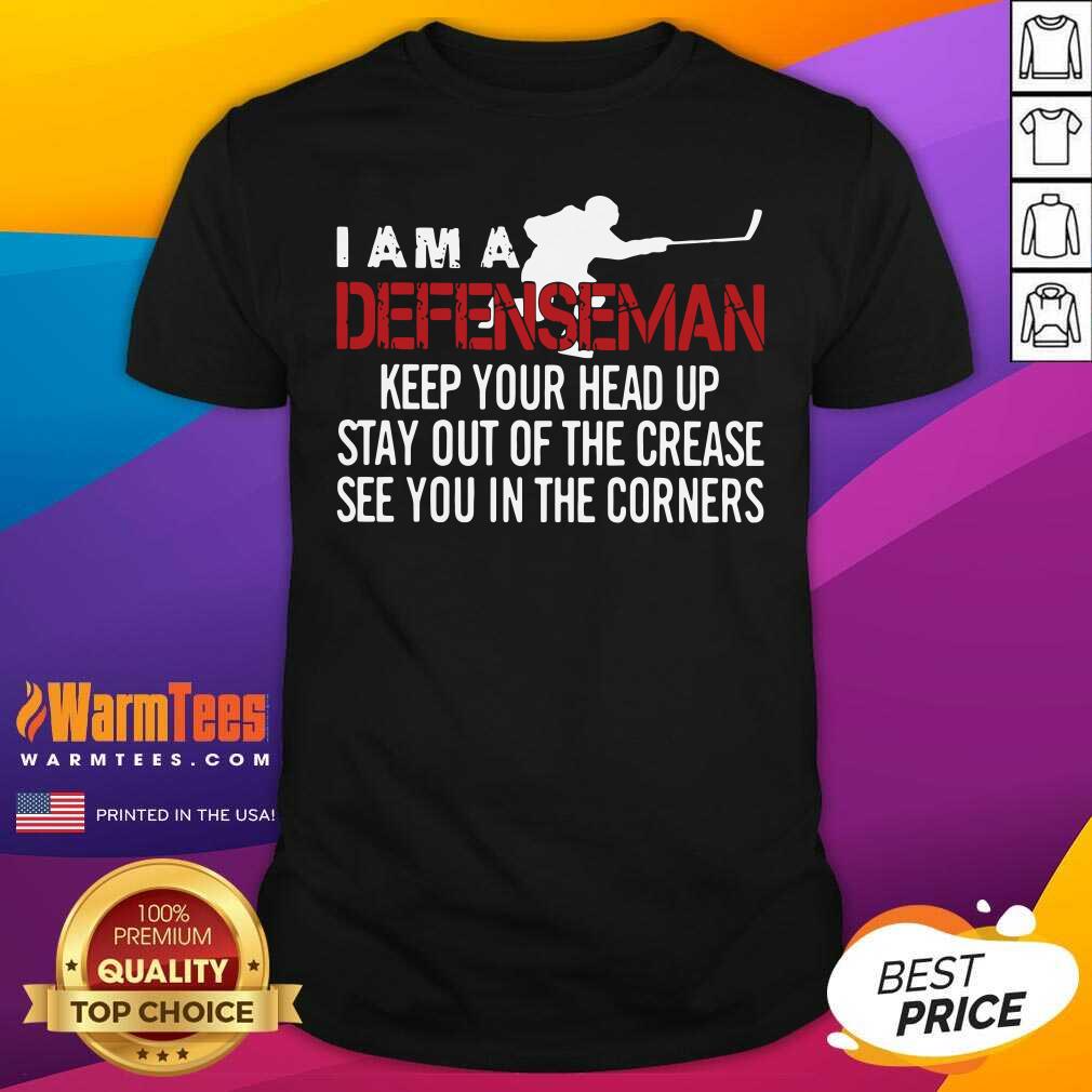 Original I Am A Defenseman Keep Your Head Up Stay Out Of The Crease See You In The Corners Shirt