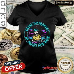 Perfect Easily Distracted By Music And Beer Skull Shirt