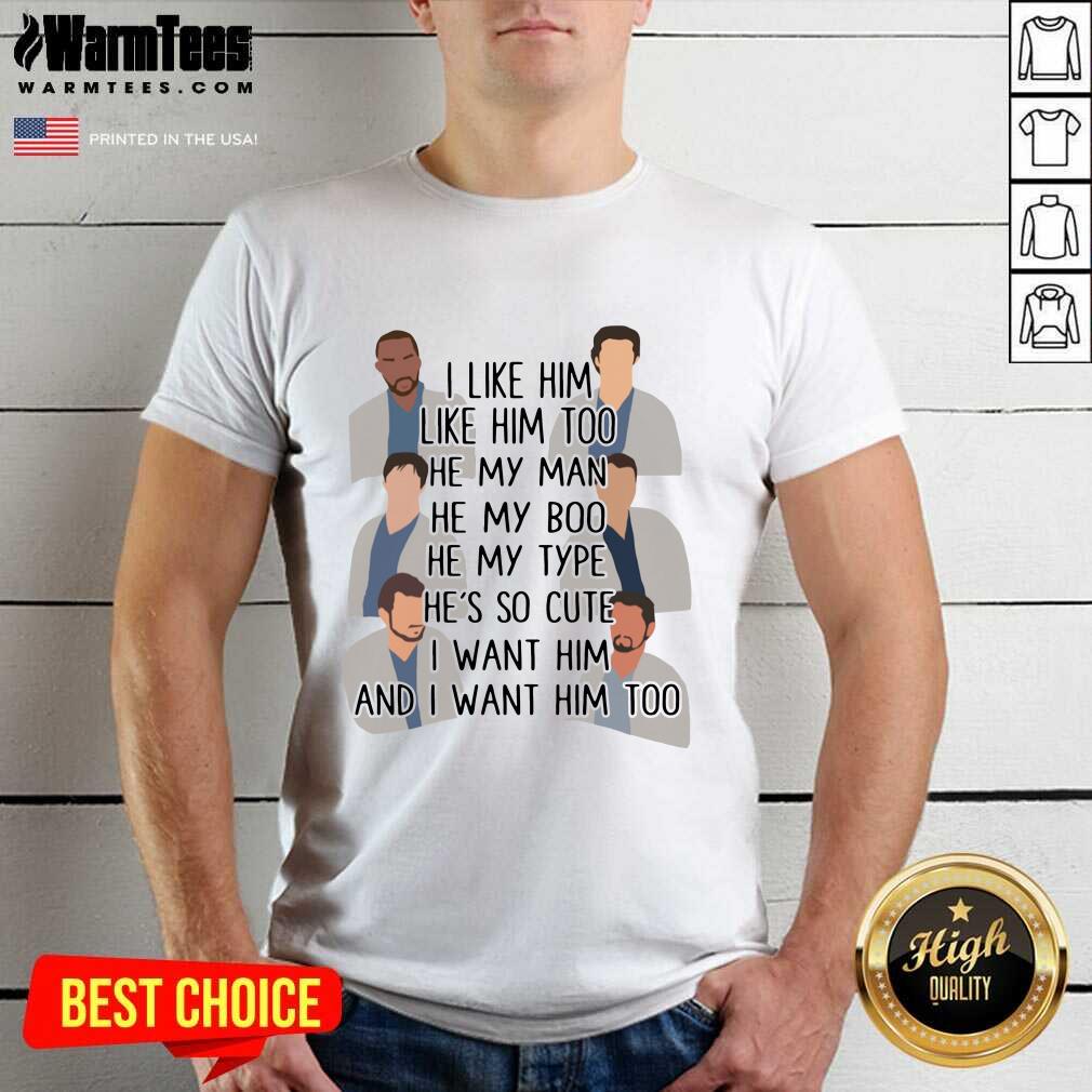 Premium I Like Him Like Him Too He My Man He My Boo He My Type He’s So Cute I Want Him And I Want Him Too Shirt