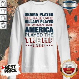 Premium Obama Played The Race Card Hillary Played The Woman Card America Played The Trump Card Shirt