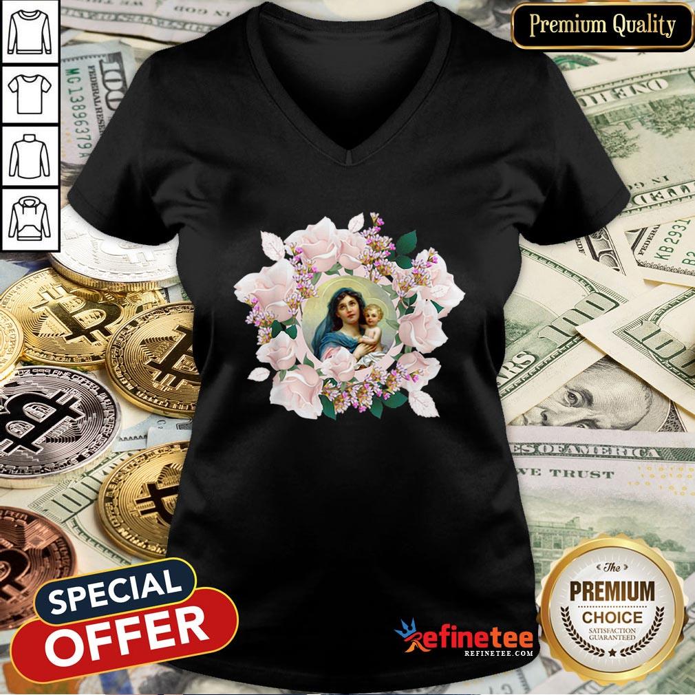 Premium Our Blessed Mother Mary And Jesus Vintage Flora Catholic Shirt