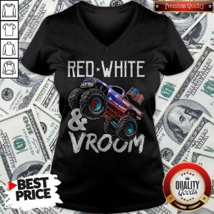 Premium Red White Vroom Monster Truck American Flag July 4Th Shirt