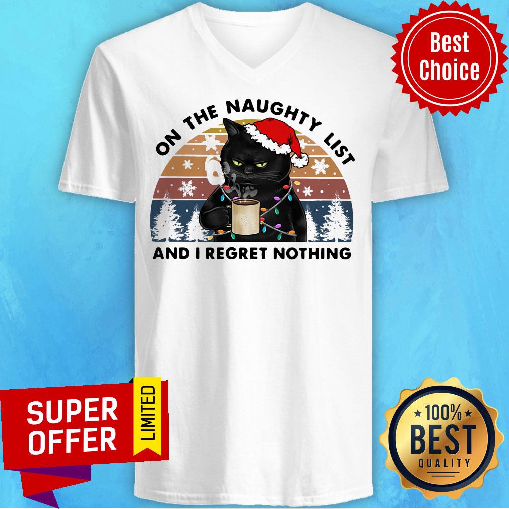 Premium Santa Black Cat On The Naughty List And I Regret Nothing Vintage Shirt