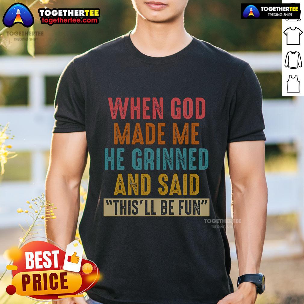 Premium When God Made Me He Grinned And Said This’ll Be Fun Vintage Retro T-Shirt
