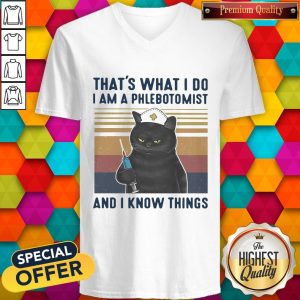 Pretty Black Cat That’s What I Do I Am A Phlebotomist And I Know Things Vintage Shirt
