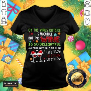 Pretty Winer Oh The VIrus Outside Is Frightful But This Wine Is So Delightful And Since We’ve No Place To Go Let Flow Christmas Shirt