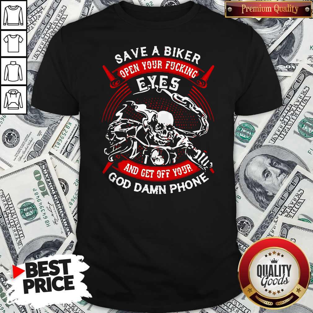 Save A Biker Open Your Fucking Eyes And Get Off Your God Damn Phone Shirt