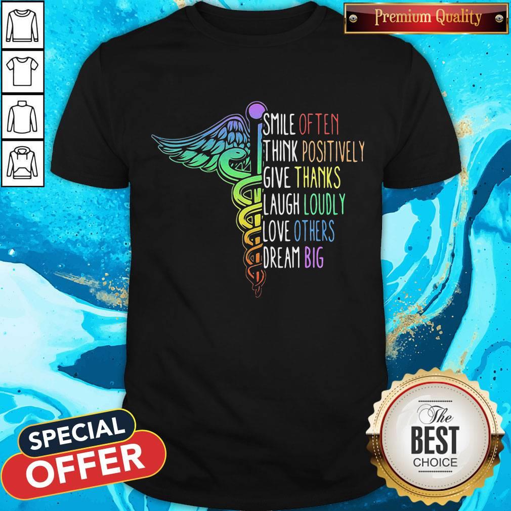 So Nurse Smile Often Think Positively Give Thank Laugh Loudly Love Others Dream Big Shirt