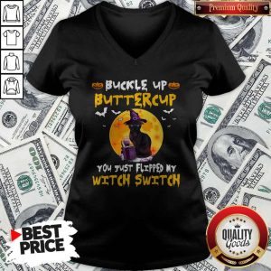 Top Halloween Cat Witch Buckle Up Buttercup You Just Flipped My Witch Switch Shirt