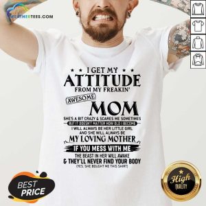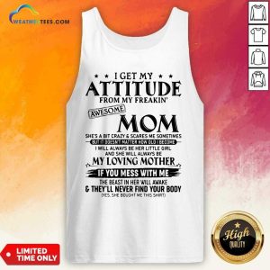 Top I Get My Attitude From My Freakin Awesome Mom She is A Bit Crazy And Scares Me Sometimes Shirt