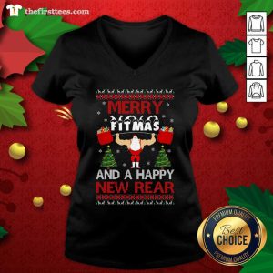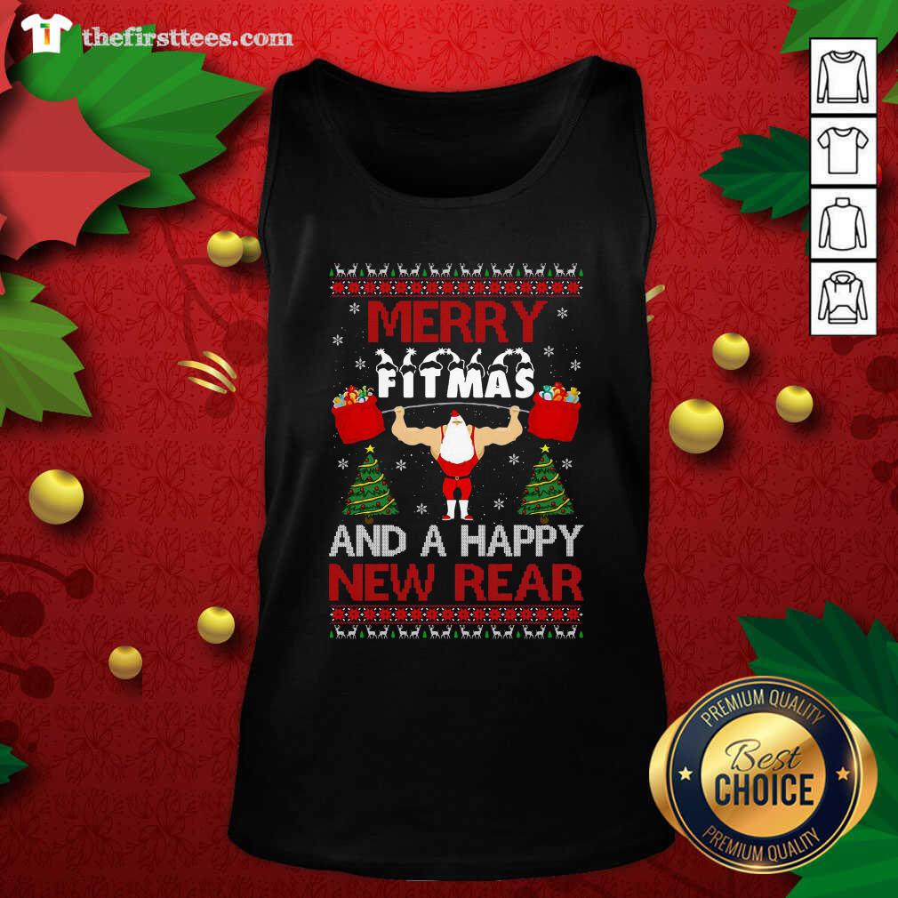 Top Merry Fitmas And A Happy New Rear Gym Ugly Christmas Shirt