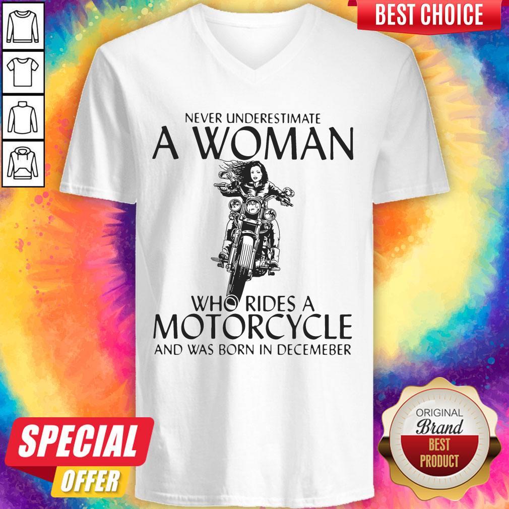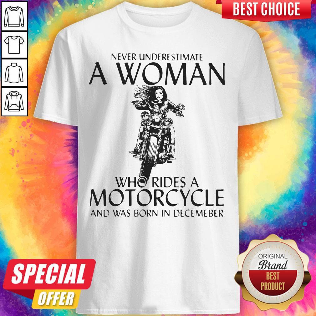 Top Never Underestimate A Woman Who Rides A Motorcycle Shirt And Was Born In December Shirt