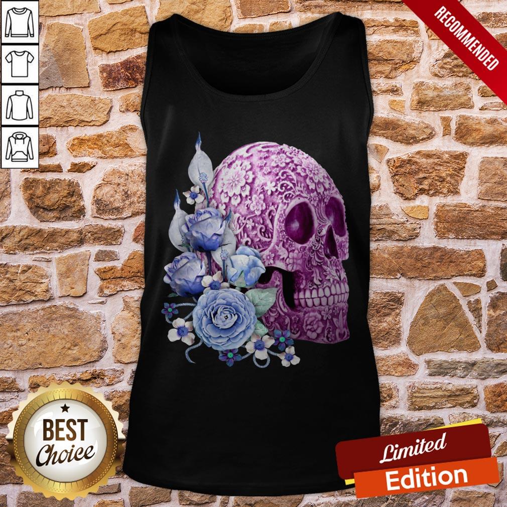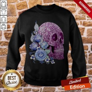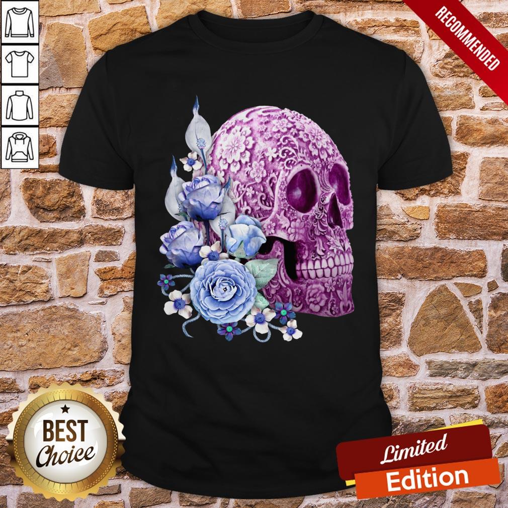 Unique Cool Pink Floral Blue Flowers Skull Shirt
