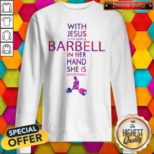Explore more about the With Jesus In Her Heart And Barbell In Her Hand She Is Unstoppable Shirt and make it yours today!