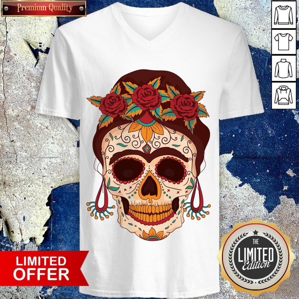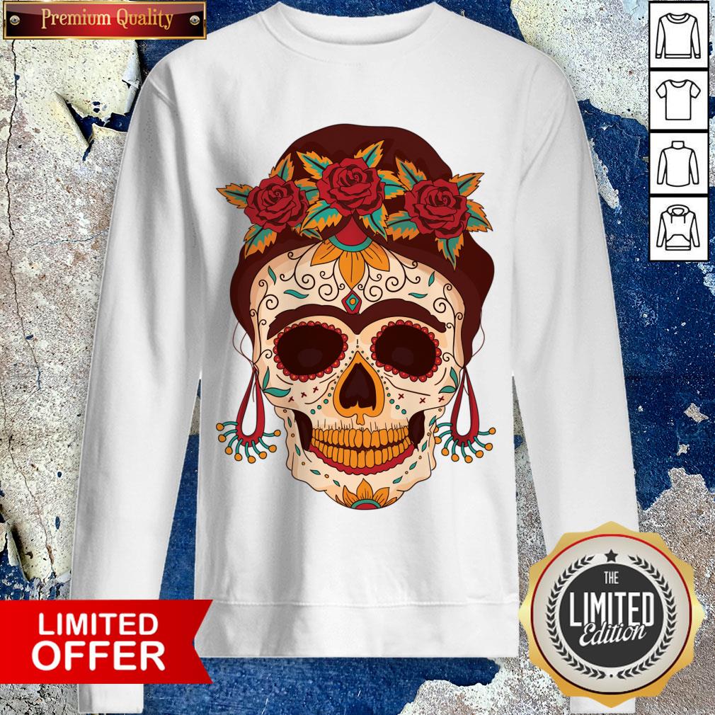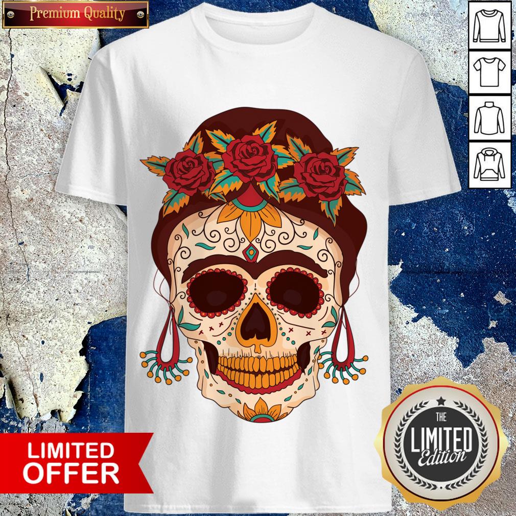 Woman Sugar Skull With Flowers Dia De Los Muertos Day Dead Shirt